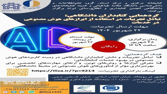 گردهمایی کتابداران دانشگاهی با محوریت تبادل تجربیات کاربرد هوش مصنوعی در بهبود خدمات کتابخانهای، پس از دریافت درخور توجه ۲۴ اثر تخصصی از سوی شرکتکنندگان، با رویکردی علمی و دقیق برگزار خواهد شد.